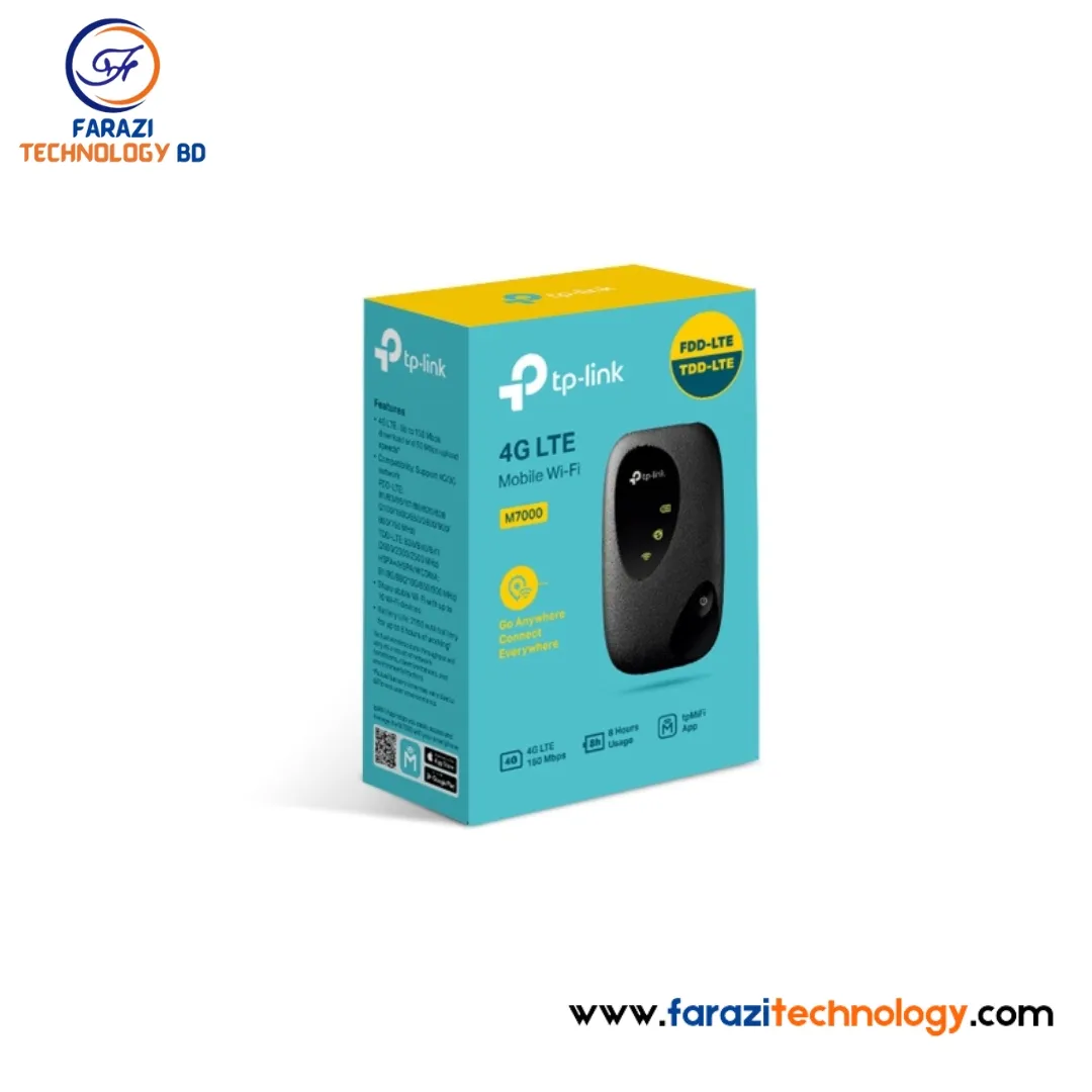 The TP-Link M7000 is a 150Mbps 4G LTE Mobile Wi-Fi Router, designed for on-the-go internet connectivity. It allows users to share a 4G LTE connection with multiple devices, making it perfect for travel, remote work, or areas without fixed broadband.